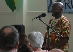 Helena’s Mayor Wilmot Collins was the guest speaker at the Great Falls Rising July meeting, held Tuesday night (July 31st) at the Episcopal Church of the Incarnation. Wilmot spoke of the challenges faced when his home country, Liberia, became politically unstable. After escaping to Ghana and the Ivory Coast, he was able to begin the process of coming to America to join his wife. She had won a scholarship to Carroll College, and with their newborn daughter, waited about two and a half years for Wilmot to finally join them. He also discussed running for mayor and experiences after he was elected. Great Falls Mayor Bob Kelly gave a nice introduction before Wilmot spoke.