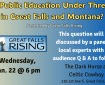 Great Falls Rising invited Tom Moore, Superintendent of Great Falls Public Schools (GFPS), and Jamie Marshall, Chair of Kids’ Education YES, for an evening of information and conversation about our local public schools. Data and trends related to the state… Read More ›